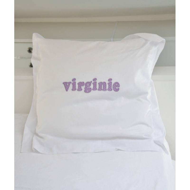 Taie d'oreiller personnalisée brodée au prénom et colorie de votre choix en coton blanc;